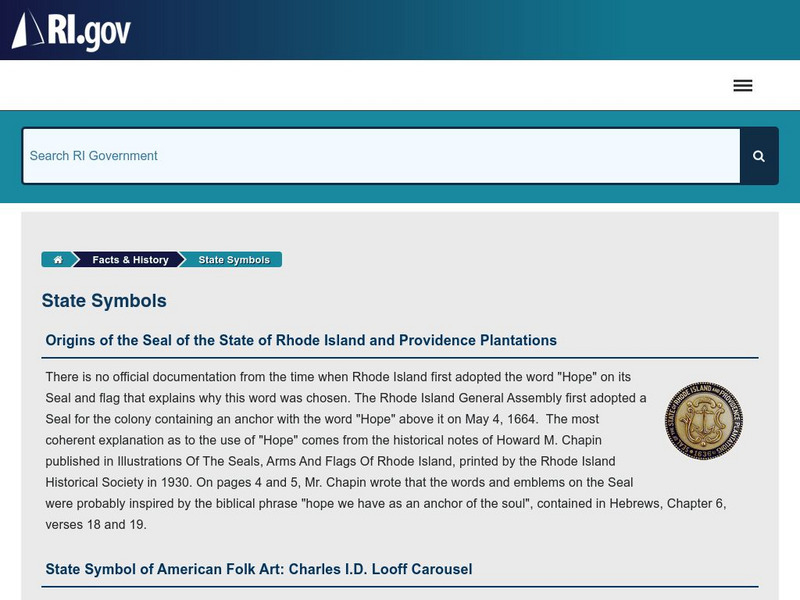 Do you know which state's folk art symbol is a carousel? Which state's official drink is coffee milk? You're right! It's Rhode Island. Learn about these symbols and more as you look at this site from the Ocean State.