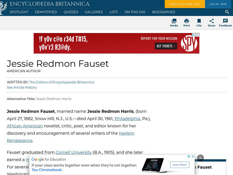 Encyclopedia Britannica: Jessie Redmon Fauset