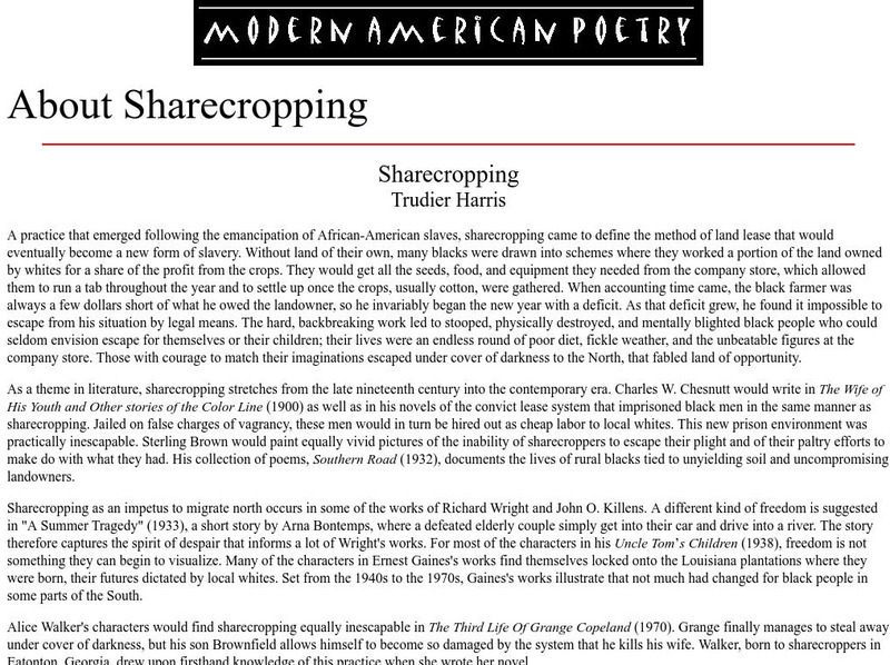 Three articles about the effects of sharecropping, a farming system that became prevalent after the Civil War for blacks and whites.