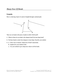 Define the sharpest in the group. Given a section of a trail map, pupils determine a method to measure the sharpness of each turn in the path. Individuals then determine what modifications to their formulas to make to find the sharpness...