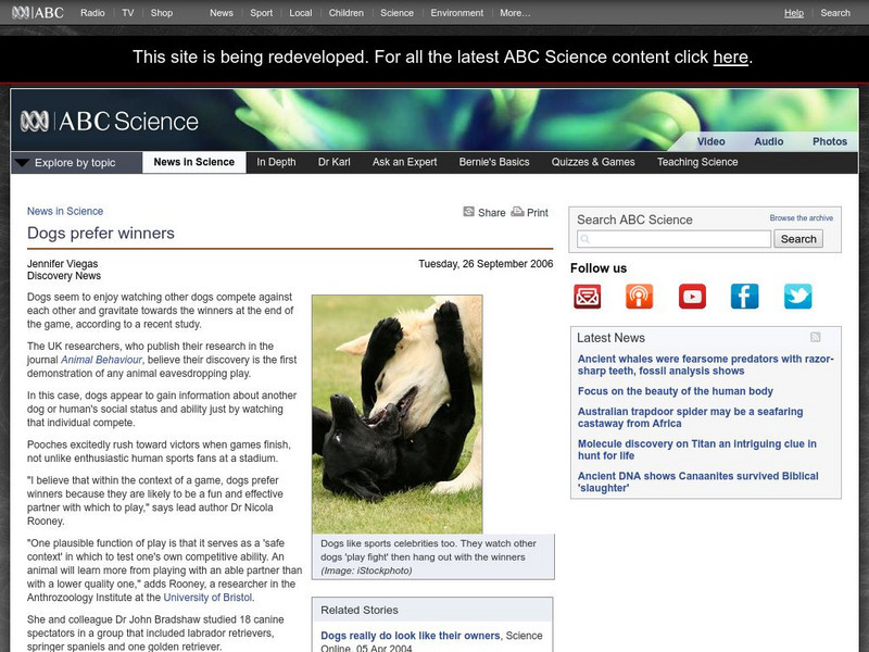 Australian Broadcasting Corporation: News in Science: Dogs Prefer Winners