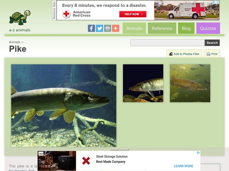 Provides photographs and a fact card about the pika, a freshwater fish. Discusses the five species, where they are found, physical characteristics, diet, animals they prey upon, features of the female pike, reproduction, and population...