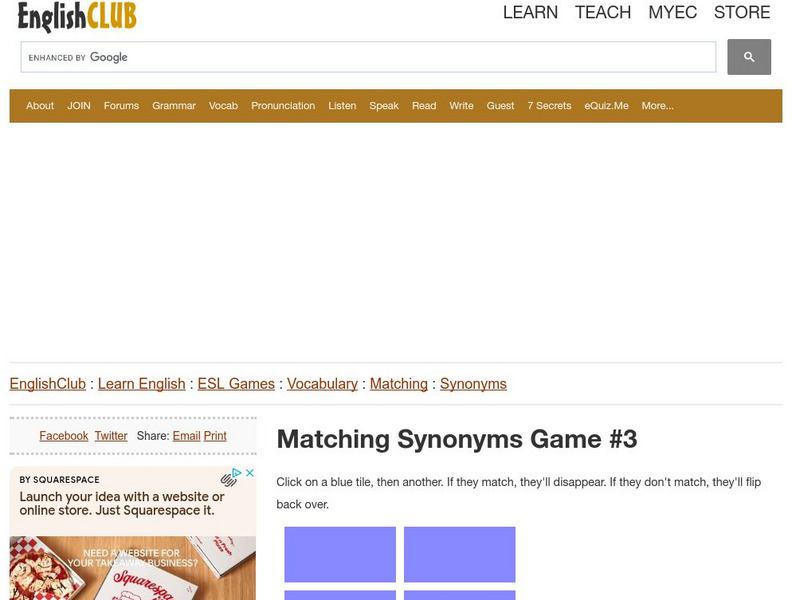 English Club: Esl Games: Matching Games: Synonyms 3 (Lower Intermediate)