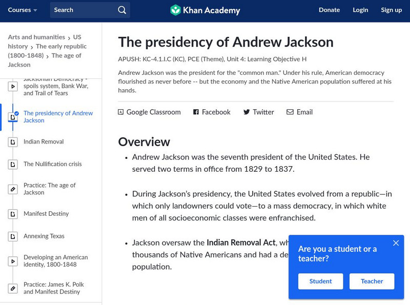 Khan Academy: The Presidency of Andrew Jackson