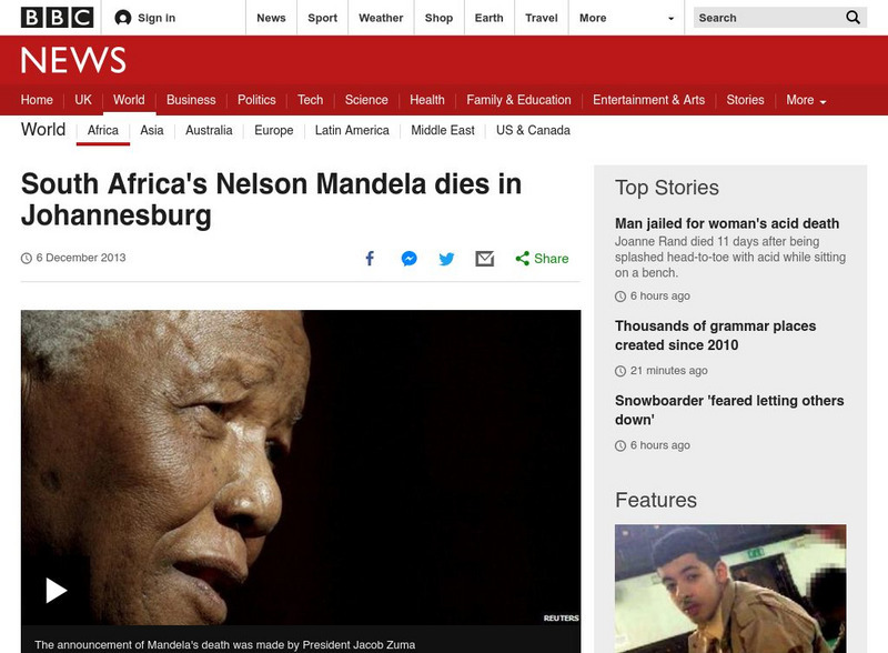Bbc: South Africa's Nelson Mandela Dies in Johannesburg