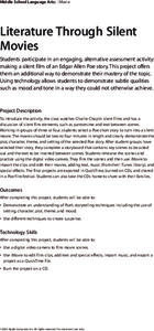 Students watch Charlie Chaplin films and discuss film elements. They select a story written by Edgar Allen Poe to write and produce a movie of. They film scenes, edit, and create a final iMovie project.