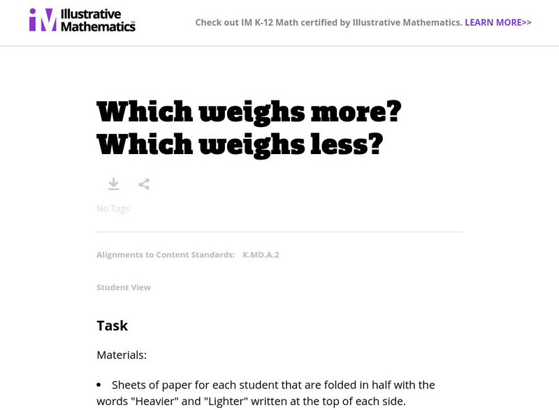 Illustrative Mathematics: Which Weighs More? Which Weighs Less?