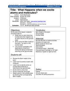 Excited atoms lead to exciting lessons! Learners use heat and light to excite both atoms and molecules. They display their learning in the form of Bohr models depicting the excited state of the atoms.