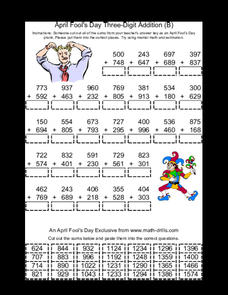 April Fool's Day Three Digit Addition B
