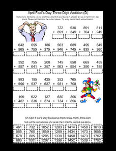 April Fool's Day Three Digit Addition A