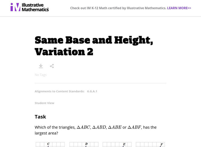 Illustrative Mathematics: 6.g Same Base and Height, Variation 2