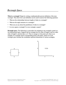 Take a coordinated look at rectangles. The task asks pupils to plot the length and width of created triangles in the coordinate plane. Using their plots, scholars respond to questions about rectangles and their associated points on the...