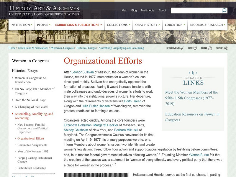 History, Art, and Archives: Us House of Representatives: Organizational Efforts