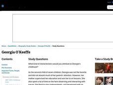In this online interactive history worksheet, students respond to 3 short answer questions about Georgia O'Keeffe. Students may check some of their answers on the interactive worksheet.