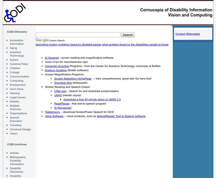 Informative site for those who need assistance with computing needs due to low vision or blindness. Many links provided to arrive at a solution!