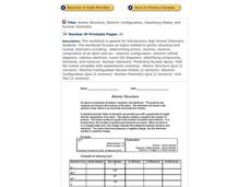 In this atoms worksheet, students review the parts of an atom, Bohr diagram, atomic number, mass number, and covalent bonds. This worksheet has 5 drawings and 26 fill in the blank questions.