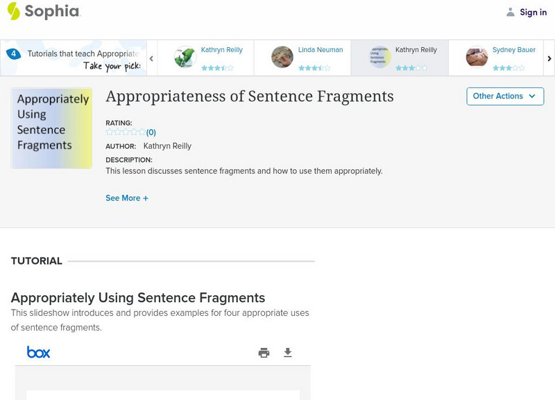This slideshow lesson focuses on the appropriateness of sentence fragments. It defines sentence fragments and discusses how writers use them: to gain the reader's attention, to emphasize an important word or phrase, to answer a question,...