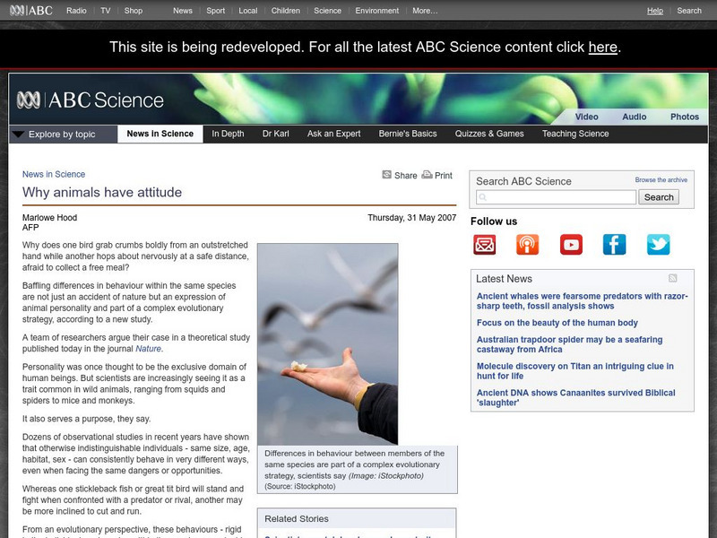 Australian Broadcasting Corporation: News in Science: Why Animals Have Attitude