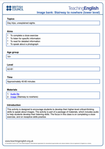 Picture this! Scholars quickly sketch an image of what they think a picture of Stairway to Nowhere would look like. They participate in a fill-the-gap exercise where they complete sentences by filling in the blanks of the transcript as...