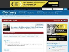 Fifth graders research and complete a graphic organizer about the principles of flight. In this aviation lesson, 5th graders experiment to understand the work of Daniel Bernouli and his discoveries about air pressure. Students create...