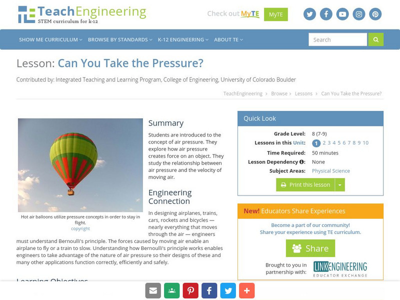 This site by the Illinois Institute of Technology lets students use a vacuum cleaner hose, ping pong balls, straws and other materials to investigate the effect of moving air upon the surfaces which it hits. Principles are applied as...