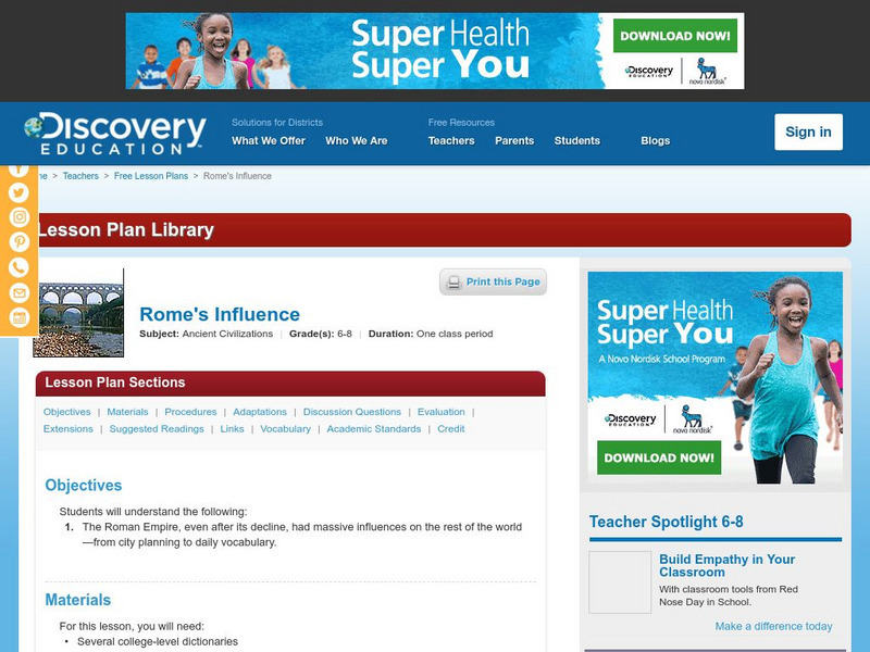 A lesson plan which has pupils understanding the impact that Rome had on history, from things as diverse as city planning to our everyday vocabulary.