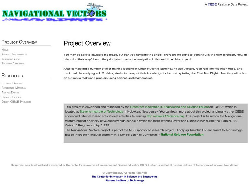 For this project, students use real time data to learn how pilots navigate when they fly. Students go through a series of lessons on vectors, weather maps and flight tracking, then take a pilot's test where they apply what they have...