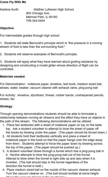 This is a culmination activity used after learners have studied Bernoulli's Principle as part of a unit on forces and fluids. Students will use the Internet, textbooks, library resources and their cooperative learning group to design...