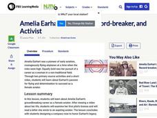 Fly through the gender barrier! Scholars investigate the impact Amelia Earhart had on American aviation and society. After watching a brief biographical video, learners take a look at primary documents to gain insight into her intriguing...