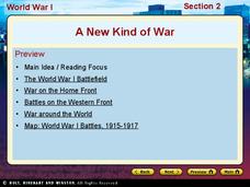 Guide reading and enhance your students' understanding of WWI with this rich presentation. Topics covered are warfare, weapons, technology, government actions, women in war, and the effects of war on the home front and around the world....