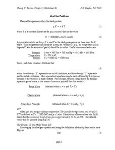 In this Avogadro's law worksheet, students read about gases and learn that under the same conditions of pressure and temperature gases with equal volumes have the same number of moles of particles. Students use Avogadro's law to solve 8...