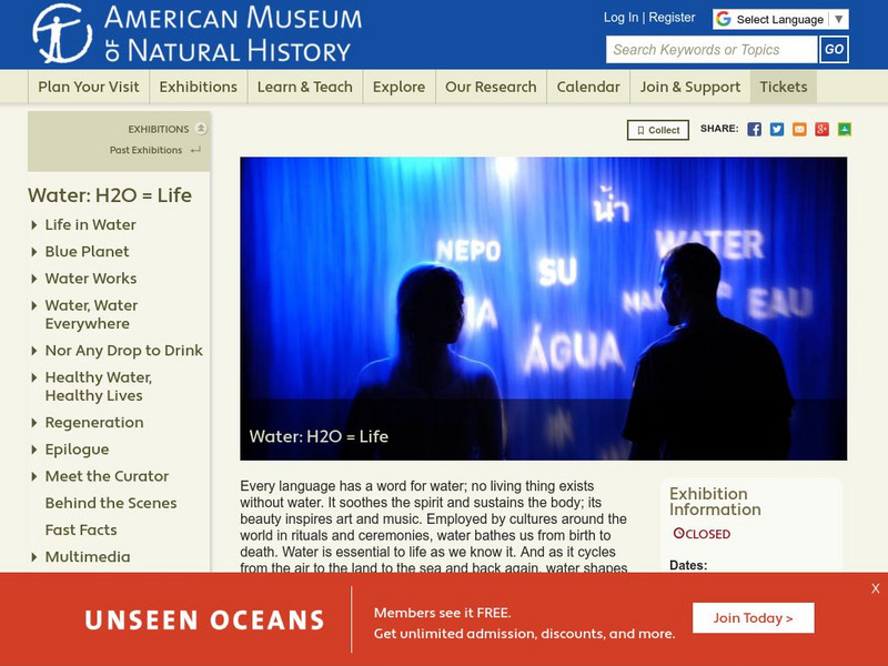 This exhibition illuminates the concept of ecological balance and the challenge of managing the Earth's water supply. Its videos and images help explain just how important water is to sustaining life.