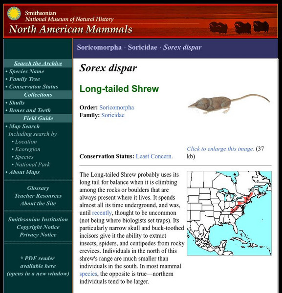 National Museum of Natural History: American Mammals: Long Tailed Shrew