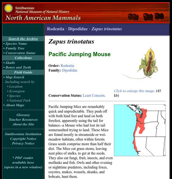 National Museum of Natural History: American Mammals: Pacific Jumping Mouse