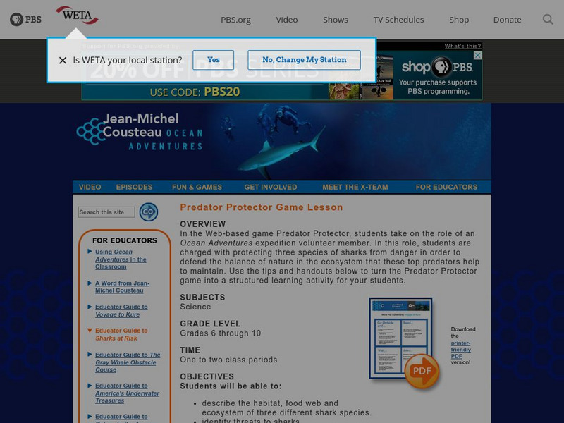Describe the habitat, food web and ecosystem of shark species. Identify threats to sharks and explore how top predators help to maintain the balance of nature within ecosystems. This lesson plan also contains an interactive game.