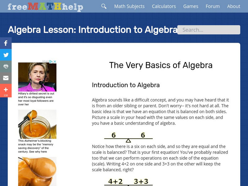 Math Is Fun: Introduction to Algebra