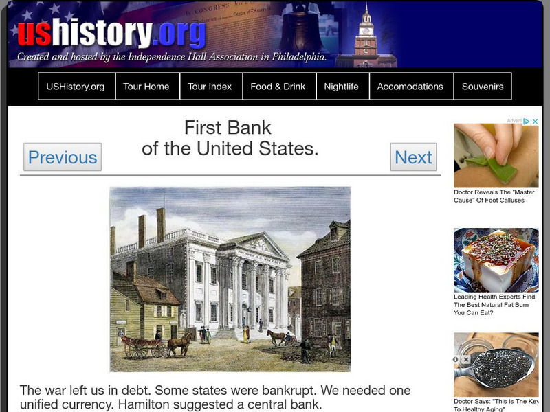 This page from the IHA provides the history of and facts about the First Bank of the United States.