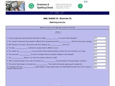 In this online interactive English vocabulary skills worksheet, students answer 10 matching questions which require them to fill in the blanks in 10 sentences. Students may submit their answers to be scored.