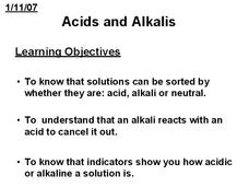 This PowerPoint progresses slide-by-slide through all the facts you would want to deliver about acids, alkalis, salts, and the related lab tests. Each slide has one or two facts about a physical or chemical property or behavior. The...