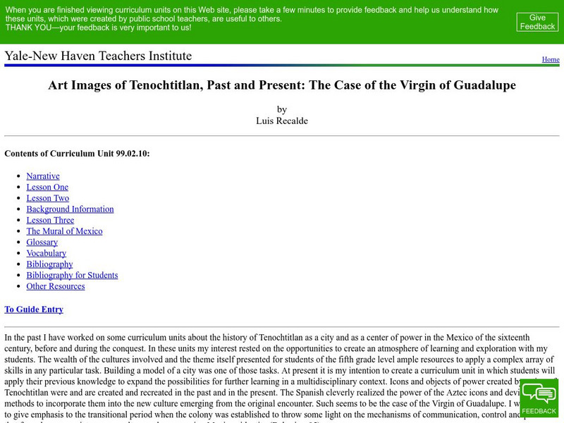 This site is a curriculum unit on art from Tenochtitlan, specifically the case of the Virgin of Guadalupe. Provides three lesson plans, a glossary, bibliography, and other resources.