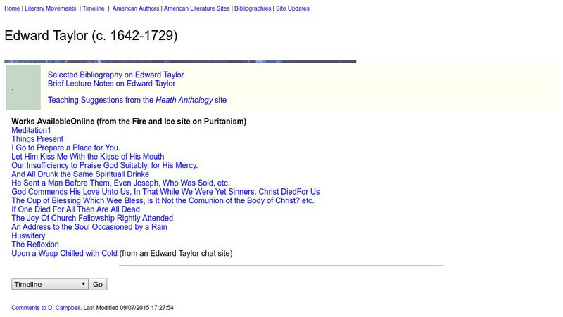 Washington State University: American Authors: Edward Taylor (C. 1642 1729)