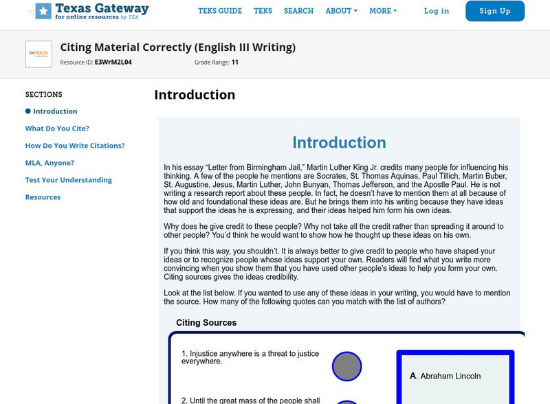 Texas Gateway: Citing Material Correctly (English Iii Writing)