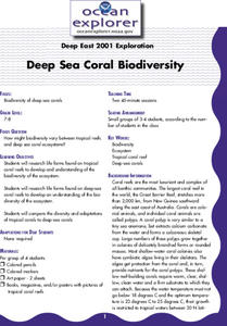 Students research life forms of both tropical coral reefs and deep-sea coral reefs to discover the biodiversity of the ecosystems. They compare and contrast the diversity and adaptations of the two eco-systems, and draw a picture showing...