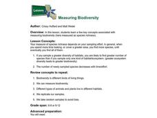 Students explore a few key concepts associated with measuring biodiversity. They are told that biodiversity can be measured in a number of ways. Genetic diversity is a measure of the genes represented in the sample. Ecosystem...