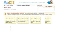 In this biomes quiz worksheet, students complete an on-line quiz, clicking on questions and matching answers, scoring 1 point for each correct answer. A printed version is available.