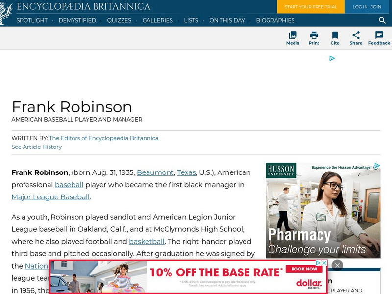 Read about the life and career of Frank Robinson, an American professional baseball player who became the first black manager in Major League Baseball.