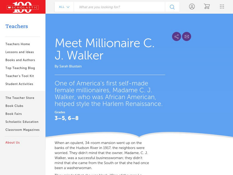 Provides biographical information about Madame C.J. Walker, the first African-American millionaire.
