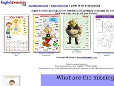 In this interactive spelling worksheet, students type in the missing letters to correctly spell the part of the human body that is illustrated. There are eight spelling exercises to complete.