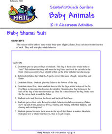 Students name and describe the functions of the whale body parts. They create killer whale suits out of paper grocery bags, and role-play whale behavior.