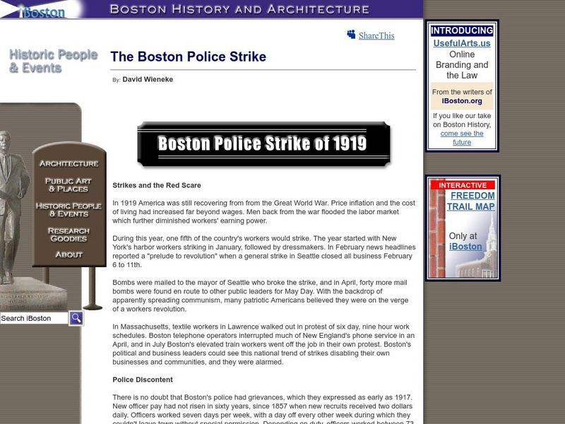 The year 1919 was a year of strikes all across America. Read about the Boston police force's attempts to unionize in order to improve wages and working conditions. The disastrous results were attributed partly to ethnic prejudice, partly...